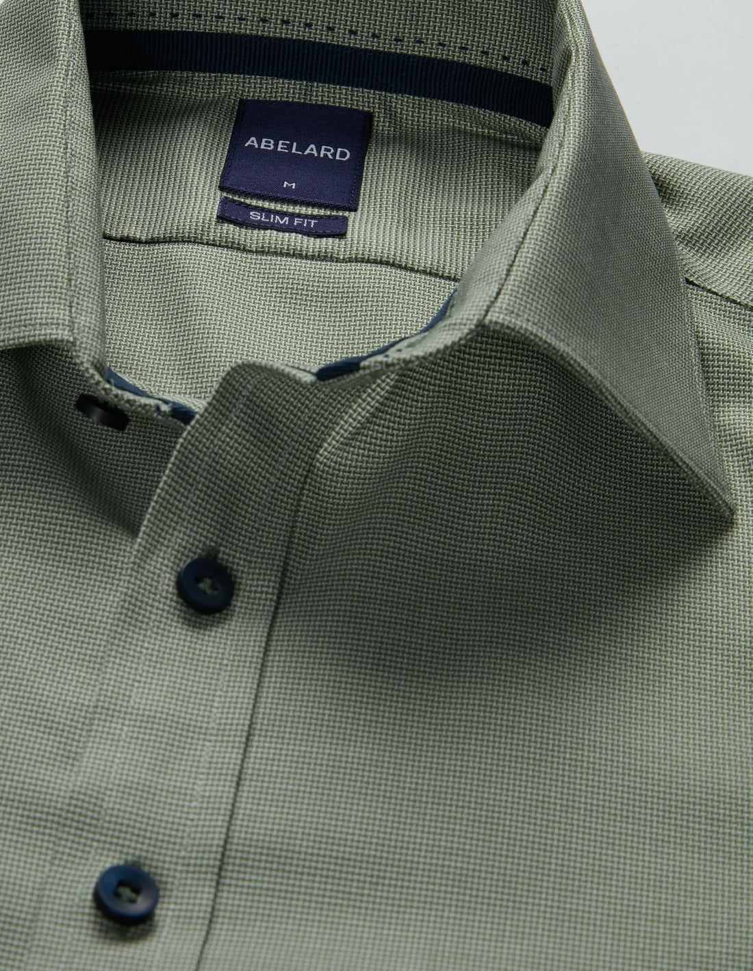 Abelard long sleeve shirt with micro herringbone texture, finished in a comfortable stretch fabric