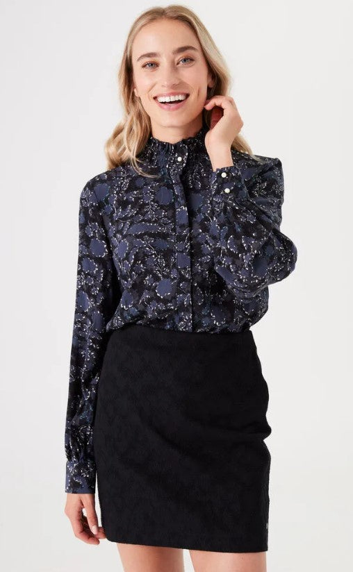 Ladies Long Sleeve Shirt with elastic frill around neck
