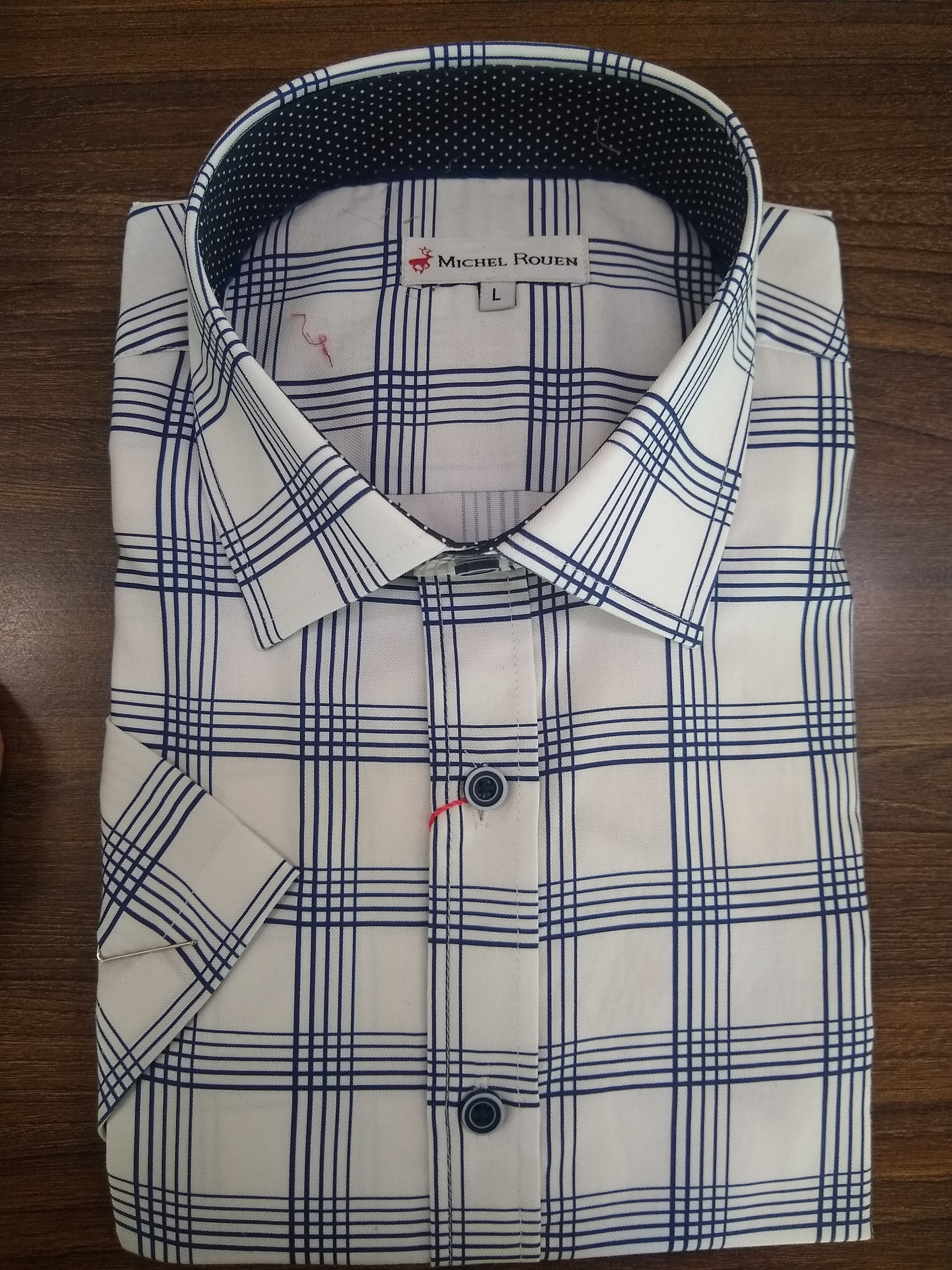 Michel Rouen Navy Large Check Short Sleeve Shirt