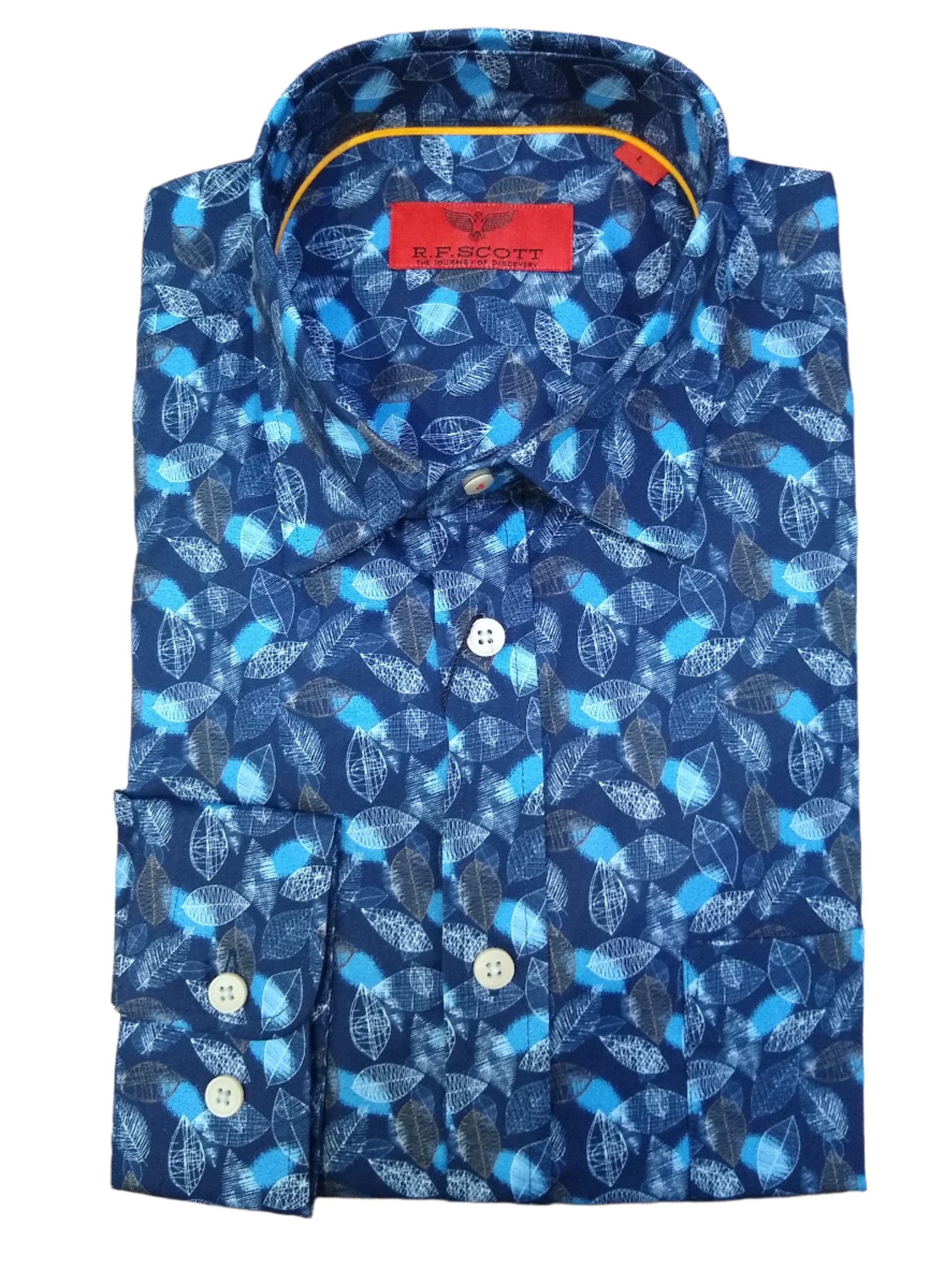 Long sleeved shirt with a Navy and Blue leaf design