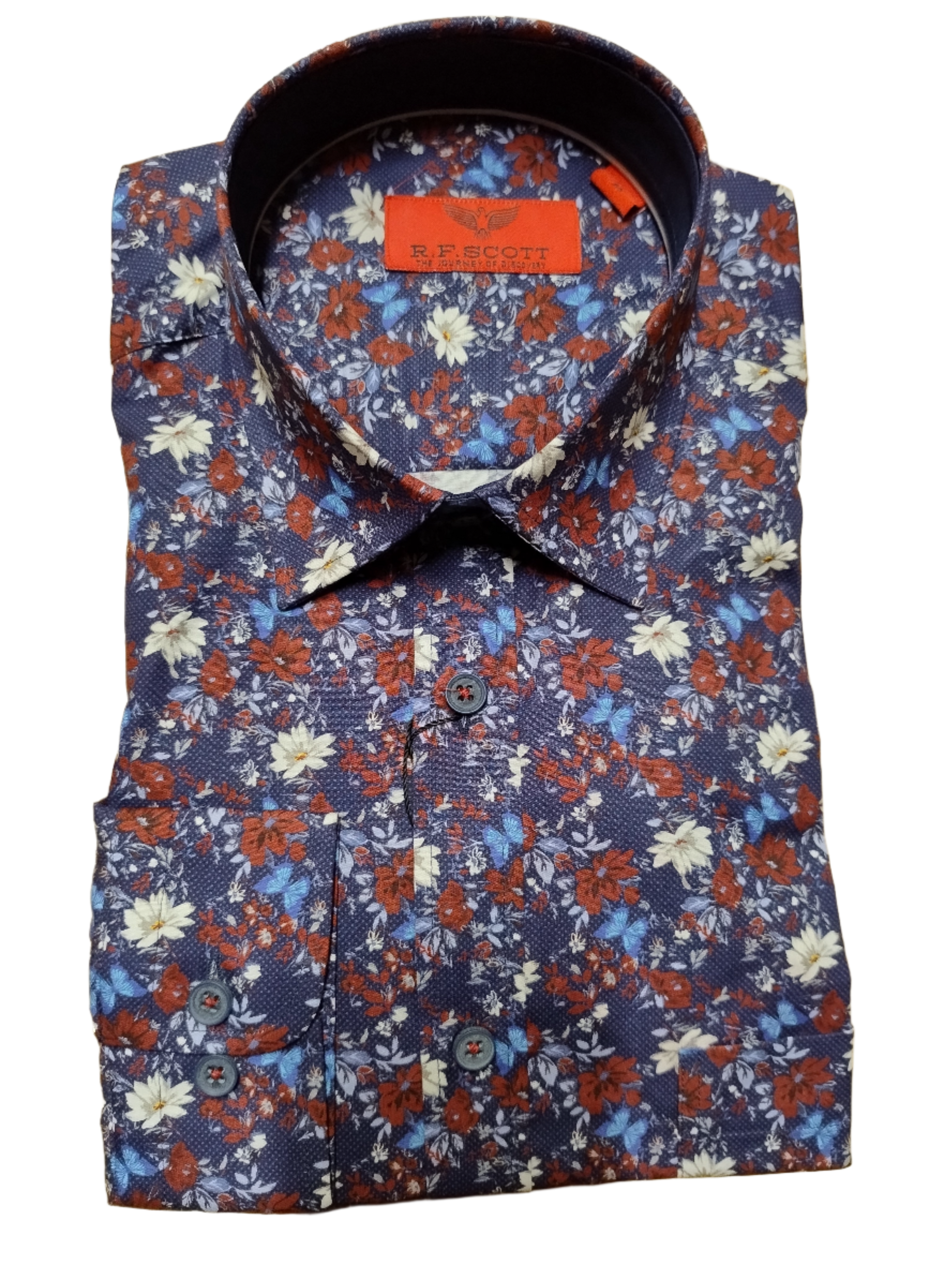 R.F. Scott Feilding Deep Blue with a Red and White Floral Long Sleeve Shirt